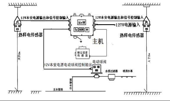 用于煤礦井上、井下粉塵濃度較大的作業(yè)場所,實現(xiàn)粉塵超標(biāo)時的噴霧降塵。當(dāng)有過往行人通過噴霧區(qū)域停止噴霧灑水;行人通過灑水區(qū)域后,延時所設(shè)定的時間后,繼續(xù)噴霧降塵。系統(tǒng)功能和延時時間可用yao控器任意調(diào)節(jié)設(shè)置