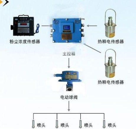 人通過灑水區(qū)域后,熱釋光控傳感器無信號輸出,延時所設(shè)定的時間后,電動球閥開啟繼續(xù)噴霧。可與煤礦監(jiān)控系統(tǒng)聯(lián)機,實現(xiàn)粉塵濃度狀況井上傳輸。